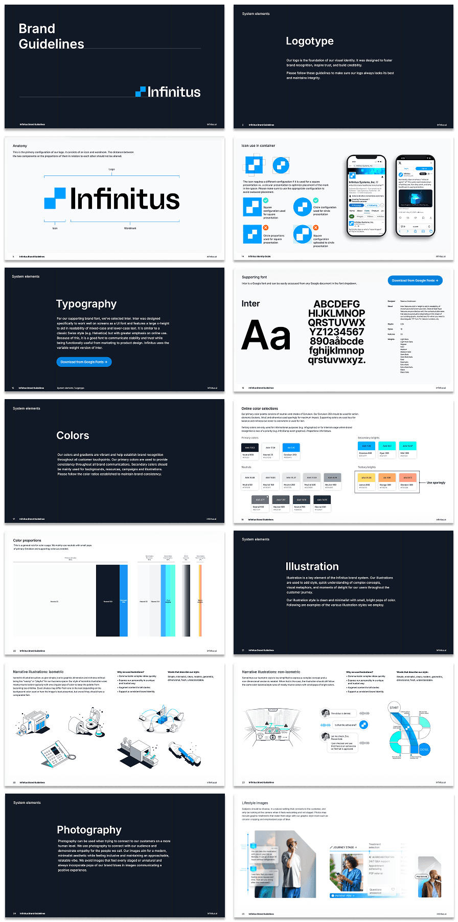 Not a simple ChatGPT wrapper, Infinitus was built on a multimodal, multi-model system — with layered guardrails and a robust knowledge graph derived from millions of real calls. Its selective, modular nature was its superpower. The brand system needed to reflect that: dynamic, adaptive, and engineered.